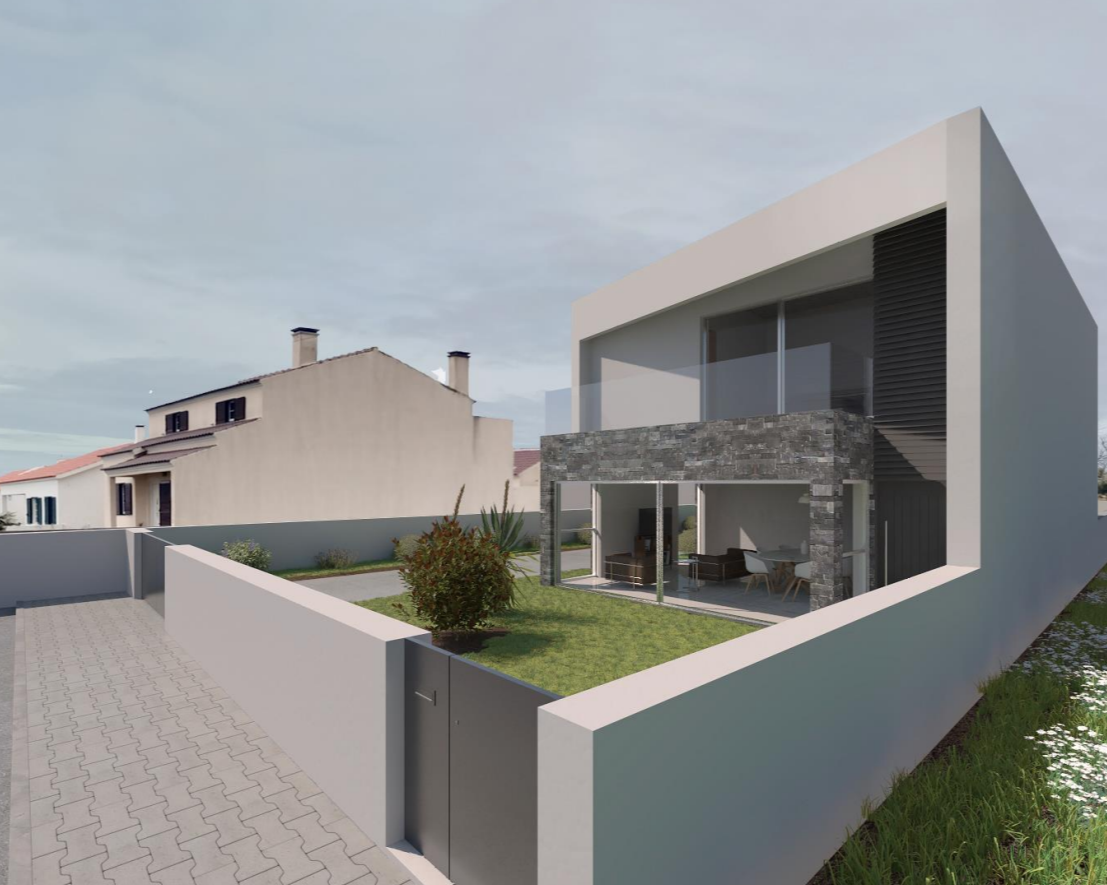 Projeto 3D exterior de uma moradia.